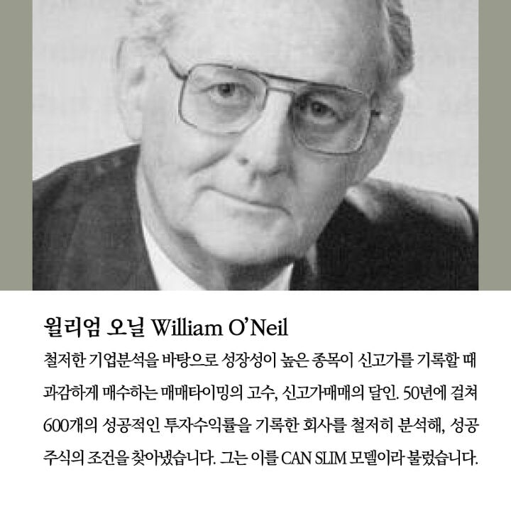 이런 것을 중점으로 보고 투자 전략을 세워 윌리엄 오닐은 투자를 하였습니다.