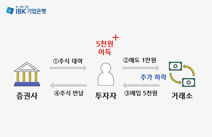 말 그대로 [없는 걸 판다]란 뜻으로 주식이나 채권을 가지고 있지 않은 상태에서 매도주문을 내는 것입니다. 없는 걸 팔 때는 누군가에게 빌려서 팔아야 될 것입니다.