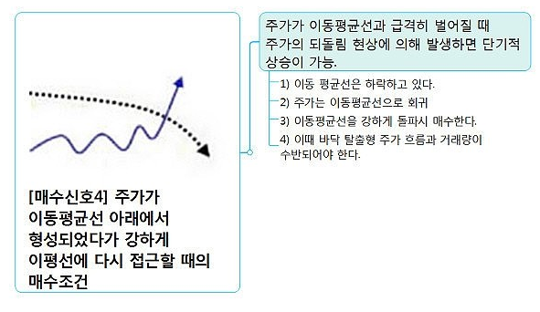 ① 이동평균선이 하락한 뒤 보합이나 상승국면으로 진입할 때 주가가 이를 뚫고 위로 올라가는 경우