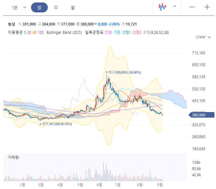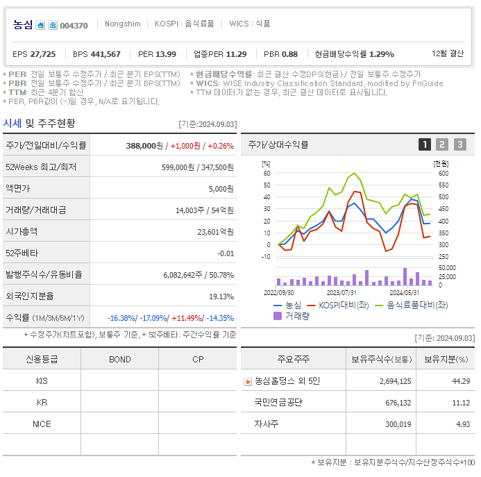 결론적으로, 농심은 국내외 시장에서의 견조한 성과를 바탕으로 꾸준한 성장을 이어가고 있으며 향후 기업 가치 상승의 중요한 요인으로 작용할 것입니다. 주가는 변동이 있으나 장기적인 투자로는 긍정적인 요소들을 보이고 있습니다.
