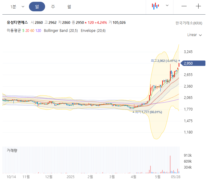 차트는 우상향하고 있습니다. 미국이 중국을 때리면서 반발 작용으로 한국이 대안이 되면서 주가는 상승하고 있는데, 한국에서 정권이 친중 정권이 자리 잡으면 같이 뚜드려 맞을 것이기 때문에 리스크가 높은 시점입니다. 투자는 비추천합니다.
