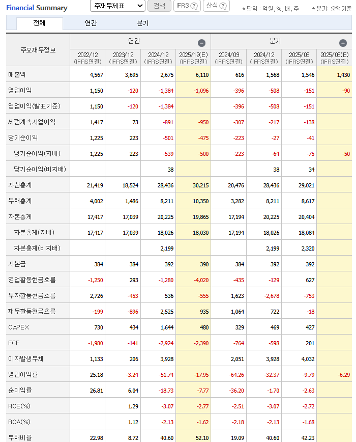 SK바이오사이언스는 2023년 매출 2,675억 원, 영업적자 790억 원을 기록하며 연구개발(R&D) 비용으로 인해 적자를 지속했습니다. 그러나 2024년 독일 CDMO 기업 IDT 바이오로지카 인수로 매출이 본격 반영되며, 2025년 매출 목표를 6,000억 원 이상으로 설정했습니다. GBP410의 상용화가 시작되는 2026년부터는 흑자 전환이 기대되며, 2029년경 IDT 바이오로지카와 GBP410의 시너지를 통해 매출 1조 원 돌파가 가능할 것으로 전망됩니다.
