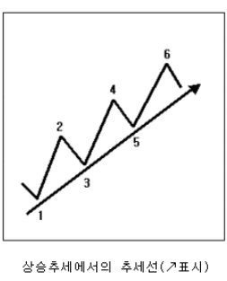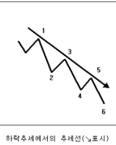 주가는 일정 기간 같은 방향으로 추세를 형성하며 움직이려는 속성이 있습니다. [price moves in trends] 이런 추세선은 차트에 추세선[trend line] 그려 보면 쉽게 알 수 있습니다. 제멋대로 움직이는 것 처럼 불확실성으로 인해서 움직이지만 사실 주가는 상승, 하락, 횡보 중 어느 하나의 추세선을 따라 움직인다는 것을 알 수 있습니다. 이러한 주가의 성질을 이용하여 하는 것을 추세 분석이라고 합니다.