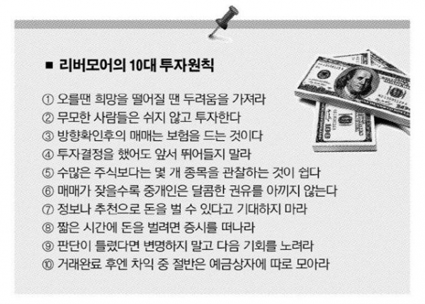제시리버 모어의 10대 투자 원칙은 다음과 같습니다.