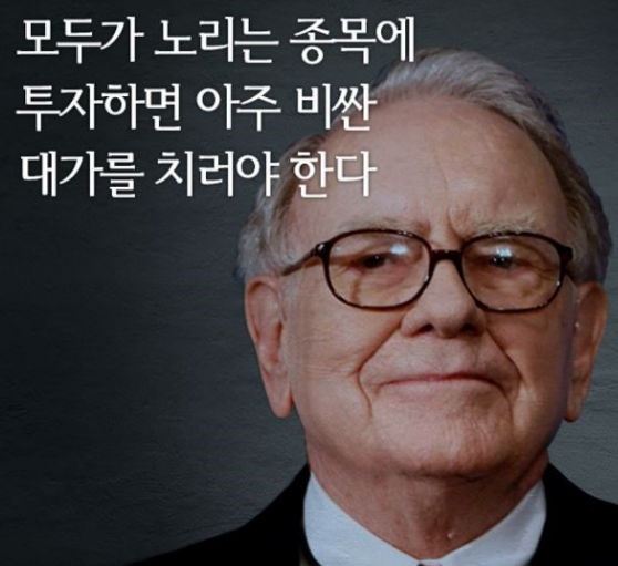 모두가 노리는 종목에 투자하면 아주 비싼 대가를 치러야 한다. -워런 버핏-
