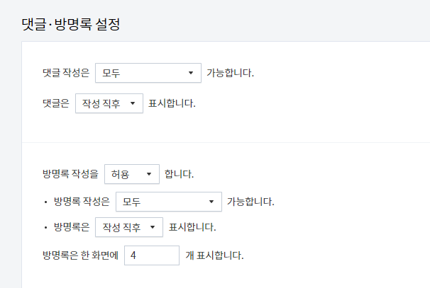 로그인한 사용자만 이라고 설정한 분들은 아마, 악성 댓글러에 대한 피해를 미리 방지하기 위함이라 생각하지만, 이 또한 해결 방법 중 하나라 생각되어 작성합니다. 저 또한 모두 가능하게 해 둔 거고요.